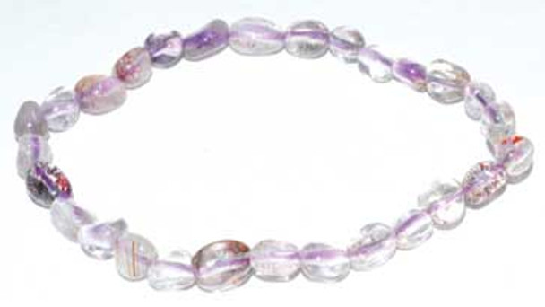 Super 7 beaded bracelet with nugget shaped beads.Super 7 consists of seven different powerful stones found together.Many great benefits packed into this bracelet.The stones consist of amethyst, clear quartz, smoky quartz, cacoxenite, goethite, lepidocrocite, rutile's.Made in china.