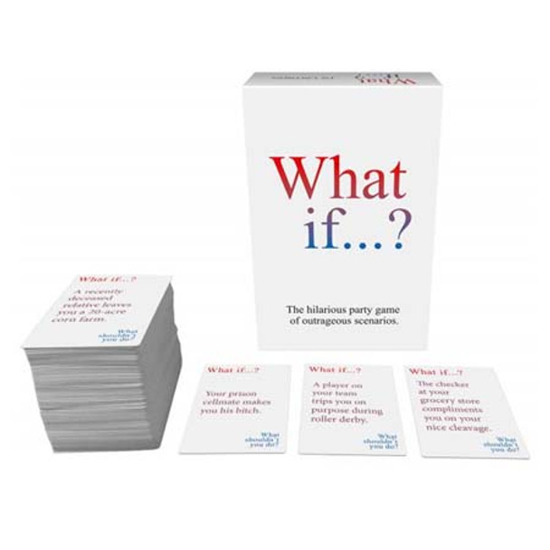 The adult party game where you blurt out the most ridiculous answers you can come up with to crazy What If...? scenarios. One player reads a What If...? Scenario Card to two competing players. They try to quickly come up with inappropriate and hilarious answers. The group then awards a point to the best answer. For 3-20 Players. Includes: 400 What If...? Scenarios (200 Cards)