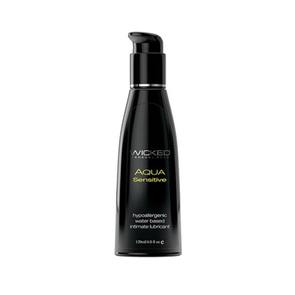 Aqua Sensitive water-based lubricant from the Wicked Sensual Care Collection is specifically designed for sensitive skin to heighten sensation and arouse satisfaction. It is smooth and satiny, never sticky and cleans away easily with water. The pH balanced hypoallergenic formula is enhanced with skin nurturing aloe and olive extracts, as well as Vitamin E. Glycerin free, paraben free and latex friendly, Aqua Sensitive is dermatologist tested and approved, with no animal byproducts or testing. 4 fl. oz/120 ml. @vday2020-52