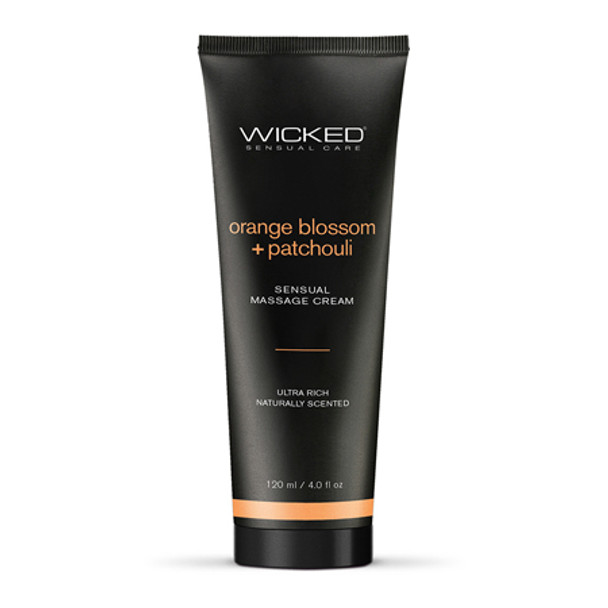 Indulge in a sultry, relaxing massage with orange blossom + patchouli Sensual Massage Cream.Caress, soften, and nourish every inch of skin with each stroke.Blended with indulgent oilsVitamins A and E quench thirsty skinElectrolytes for skin hydrationPerfect for solo or partnered useCream-to-liquidVeganSkin hunger is real. Satisfy your craving for touch with Wicked Sensual Care.HOW TO USE SENSUAL MASSAGE LOTIONDirections for use: Place your perfect amount of sensual massage cream in the palm of your hand. Rub your hands together for warmth, then slowly caress all areas in need of attention.Be advised: May lead to increased desire, intense sensations, unparalleled satisfaction and extreme bliss.ORANGE BLOSSOM + PATCHOULI SENSUAL MASSAGE LOTIONIngredient(s): Water (Aqua), Caprylic/Capric Triglyceride, Cocos Nucifera (Coconut) Oil, Prunus Amygdalus Dulcis (Sweet Almond) Oil, Cetearyl Olivate, Glyceryl Stearate, Dimethicone, Glycerin, Cetearyl Alcohol, Citrus sinensis (Sweet Orange) Oil, Citrus Aurantium Dulcis (Orange) Peel Oil, Citrus Aurantium Amara (Bitter Orange) Leaf/Twig Oil, Pogostemon Cablin (Patchouli) Oil, Helianthus Annuus (Sunflower) Seed Oil, Pelargonium Graveolens (Geranium) Flower Oil, Citrus Aurantium Bergamia (Bergamot) Fruit Oil, Cananga Odorata (Ylang Ylang) Flower Oil, Citrus Limon (Lemon) Peel Oil, Eugenia Caryophyllus (Clove) Bud Oil, Cymbopogon Martini (Palmarosa) Oil, Rosmarinus Officinalis (Rosemary) Leaf Oil, Santalum Album (Sandalwood) Oil, Labdanum Absolute (Cistus Ladaniferus (Labdanum) Resin, Theobroma Cacao (Cocoa) Seed Butter, Butyrospermum Parkii (Shea) Butter, Aloe Barbadensis (Aloe Vera) Leaf Extract, Tocopheryl Acetate (Vitamin E), Retinyl Palmitate (Vitamin A), Ascorbic Acid, Sorbitan Olivate, Ceteareth-20, Calcium, Magnesium, Potassium, Xanthan Gum, Sodium Phytate, Sodium Benzoate, Potassium Sorbate, Citric Acid